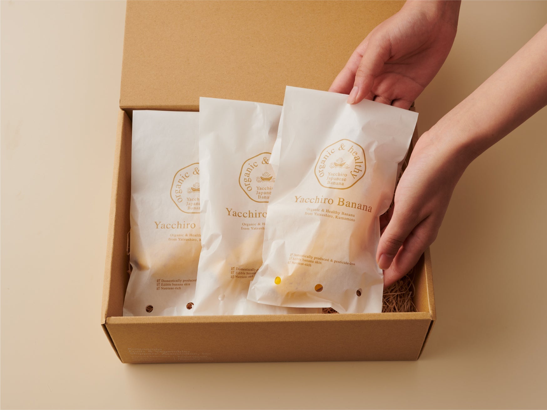 熊本県八代にて、農薬・化学肥料不使用で育てた、皮まで食べられる国産バナナです。汐風に育まれた豊かな甘みと、ねっとりとした食感をお楽しみください。1本あたり130〜180gの大きさになります。保存方法や季節によって変わりますが、お届けから約5日〜7日ほど美味しい状態をキープします。20本セットは、1日3本以上で6〜7日間の消費期間とお考えください。大家族やバナナ愛好家の方に大人気のセットで、1本当たりが一番リーズナブルな価格となります。無農薬でしっとりとしたバナナを、朝食や料理やお子さんのお菓子と存分にお楽しみいただけます。もちろん、お歳暮などの特別なギフトとしてオススメです。
